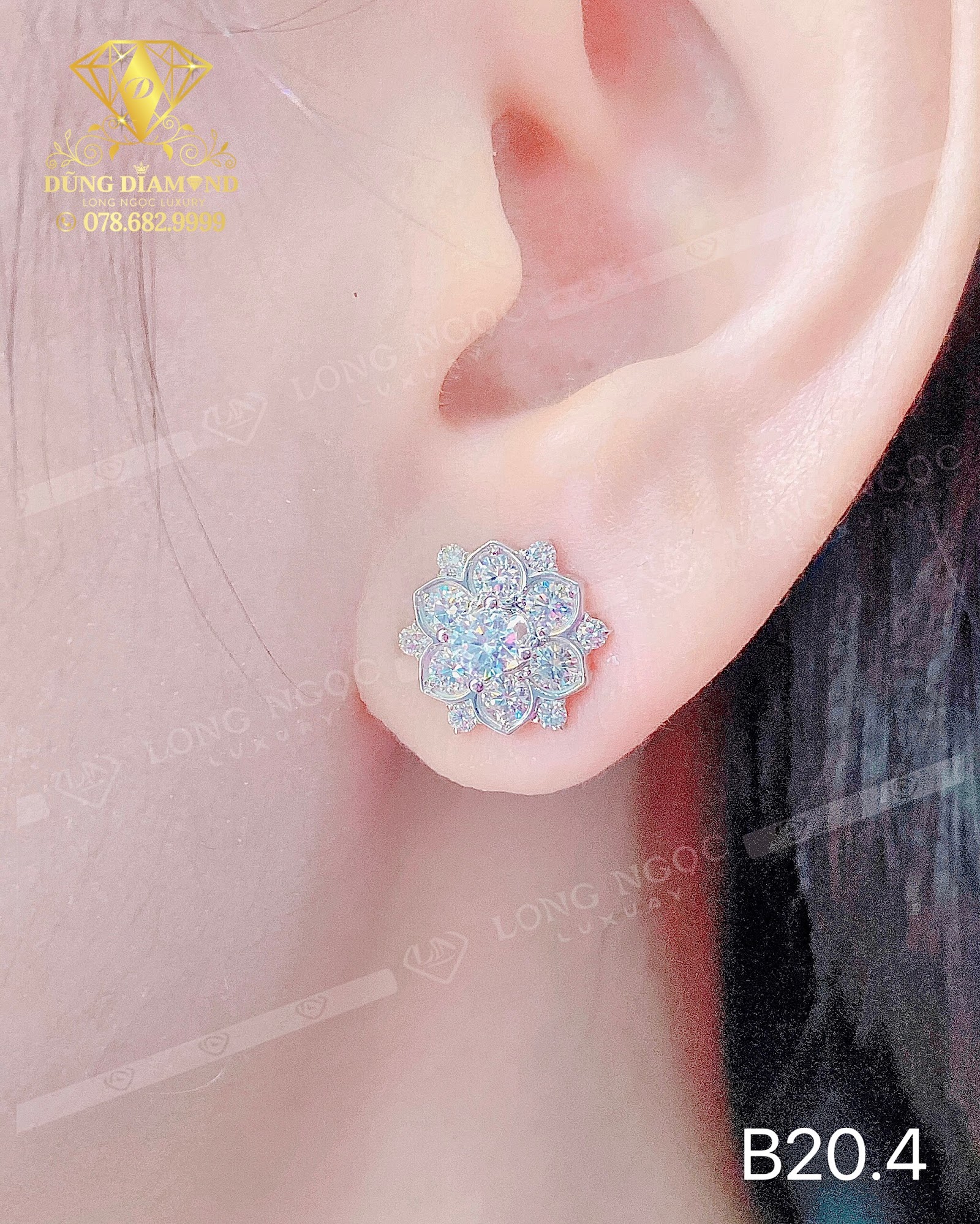 Bông Tai Nữ Kim Cương Kiểu Dáng Hình Bông Hoa B20.4 - 1.7-2.7